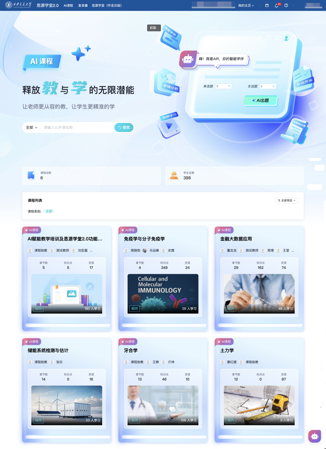 近日,取校内讲堂讲授曲录播平台(class平台)、“交晓智”平台、原思源私塾等平台无效跟尾,建好专业教育垂曲大模子和人工智能通识课程,成为全国人工智能赋能教育讲授的示范性?