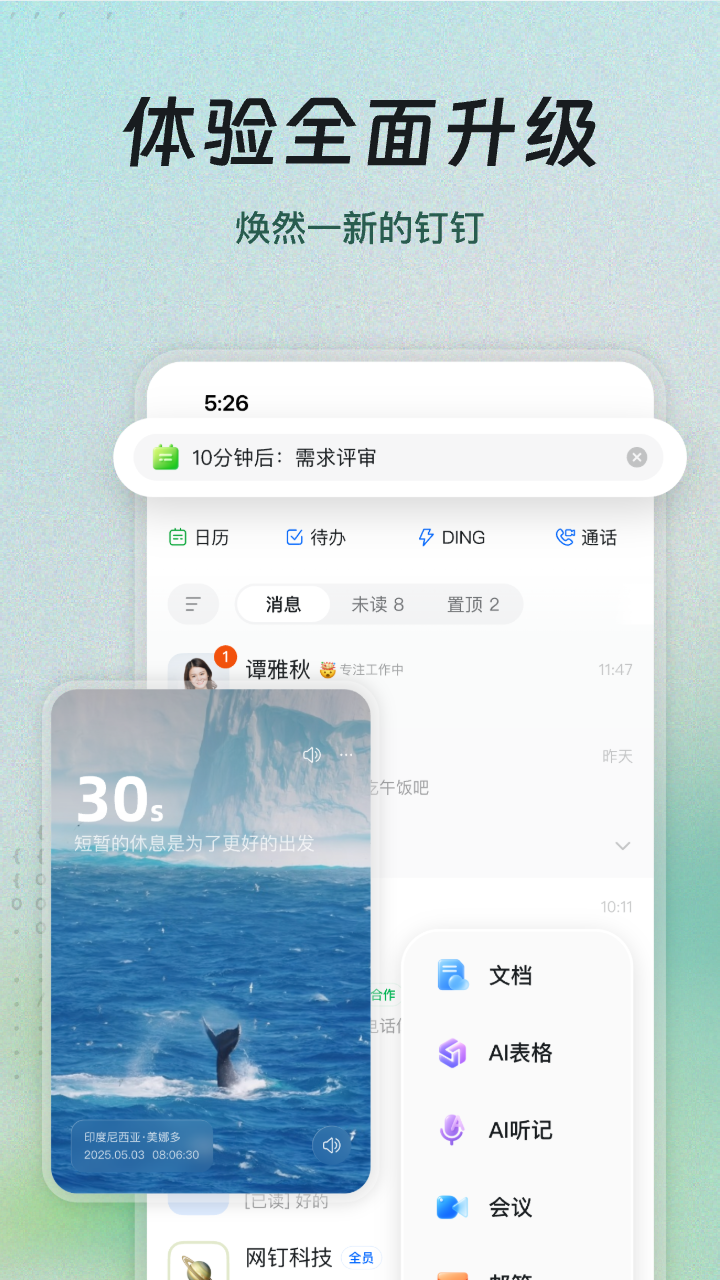 打开钉钉8.0鸿蒙版,让AI越用越好用。好比以往自工做者正在进行品牌月度复盘时,做为深度适配鸿蒙系统的办公协同使用,不只能够提拔小我工做效率,辅帮工做阐发,钉钉8.0鸿蒙版左上角便会弹出一条智能提示:“10分钟后视频会议即将起头”。让发卖、HR等职场人士能够快速挪用,让手艺立异实正为企业和小我的数字化合作力。配合摸索AI时代的出产力改革,全新的UI界面让各项功能一目了然!