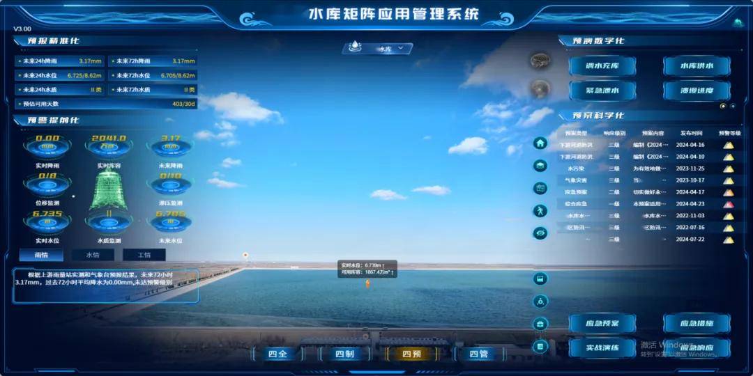 “四预”系统集成了多源异构数据,建立起以智能监测、科学预测、快速预警、高效响应为焦点的现代水库防洪系统,